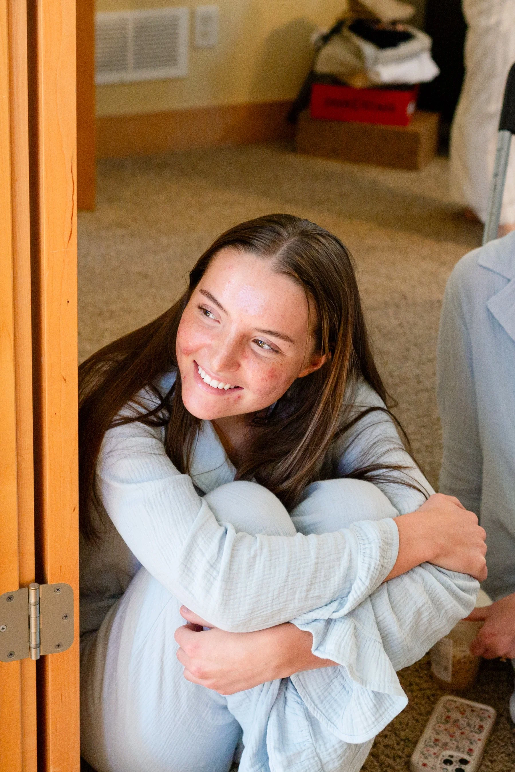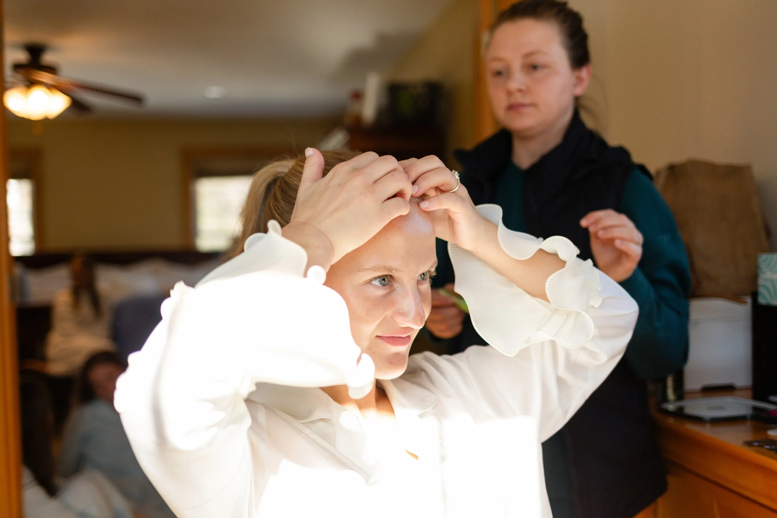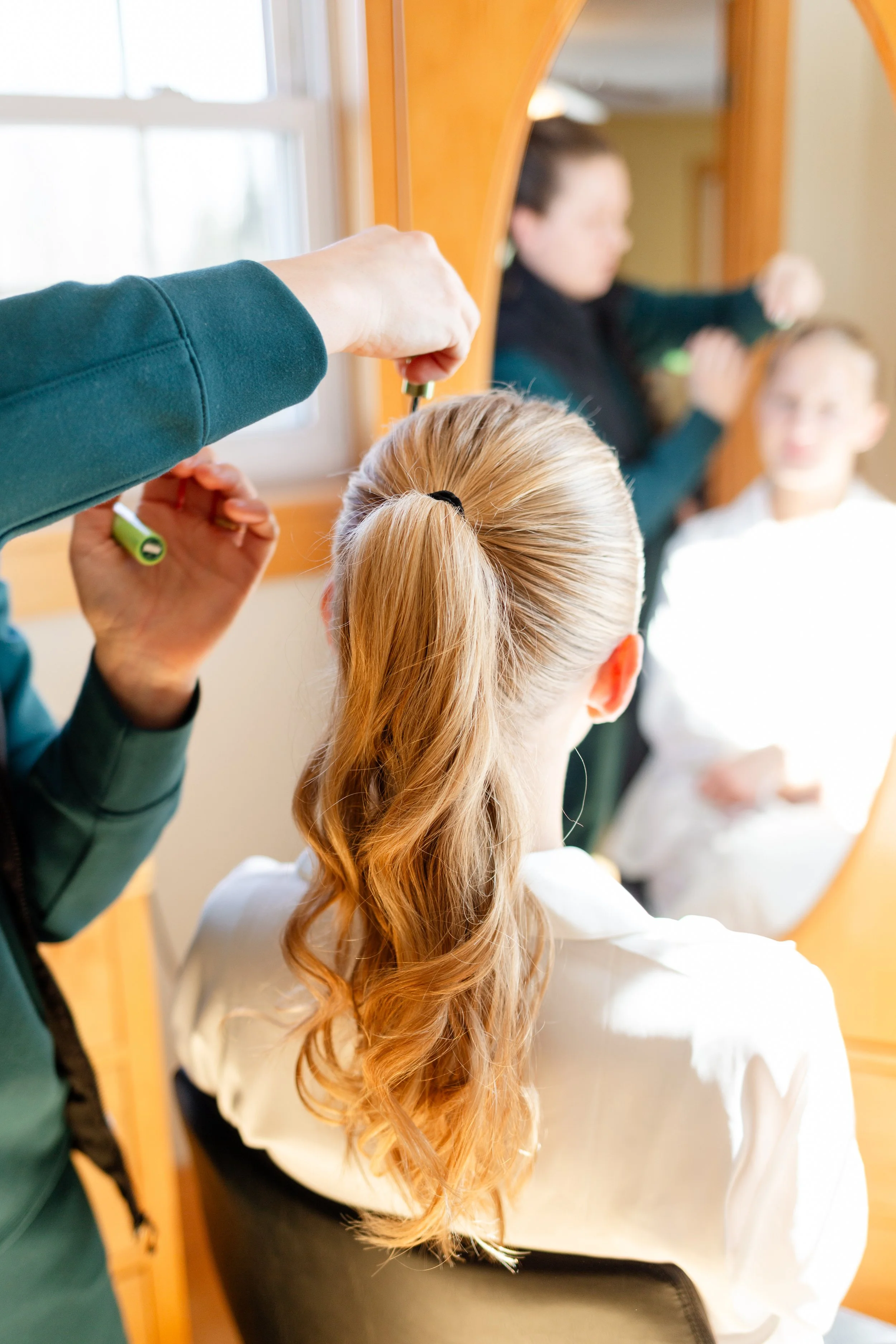 I love when I get to work with the same families multiple times! I photographed Sarah’s sister Laura’s wedding in September of 2024 and I was thrilled to be back for Sarah’s wedding in March of 2025. The family is so relaxed and the kids getting ready around everyone adds so much joy and cute photo opportunity to the day.