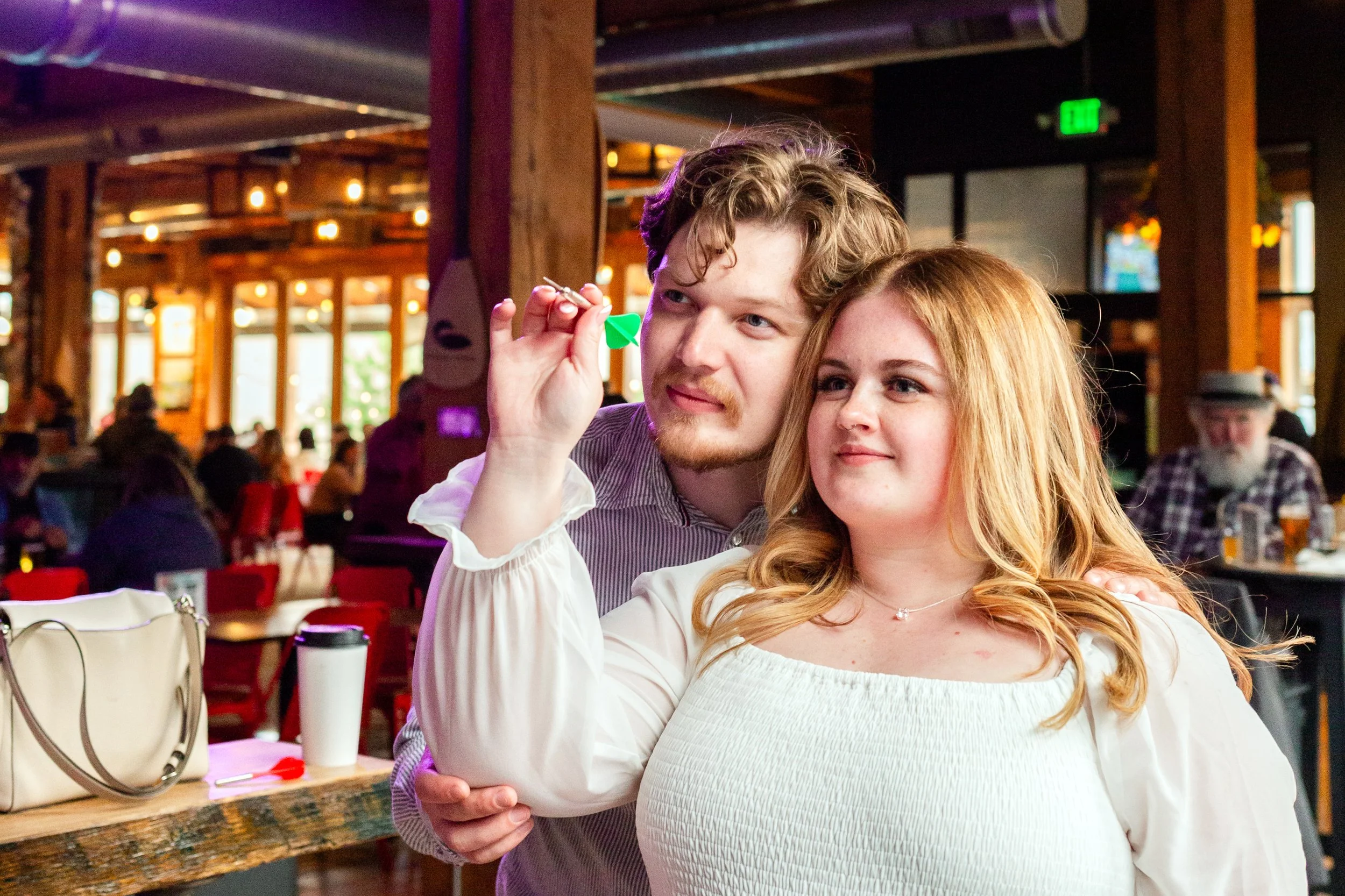 From Enger Tower, we drove down to Bent Paddle Brewing and did some photos near there. Jordyn and Bryce often visit the brewery and play darts for date night. They had hoped they could play a round of darts for some photos, but since there was live music in the dart space, we had to improvise. Thankfully the staff was kind enough to let us sneak in for a minute while the band was on break and get a few photos!