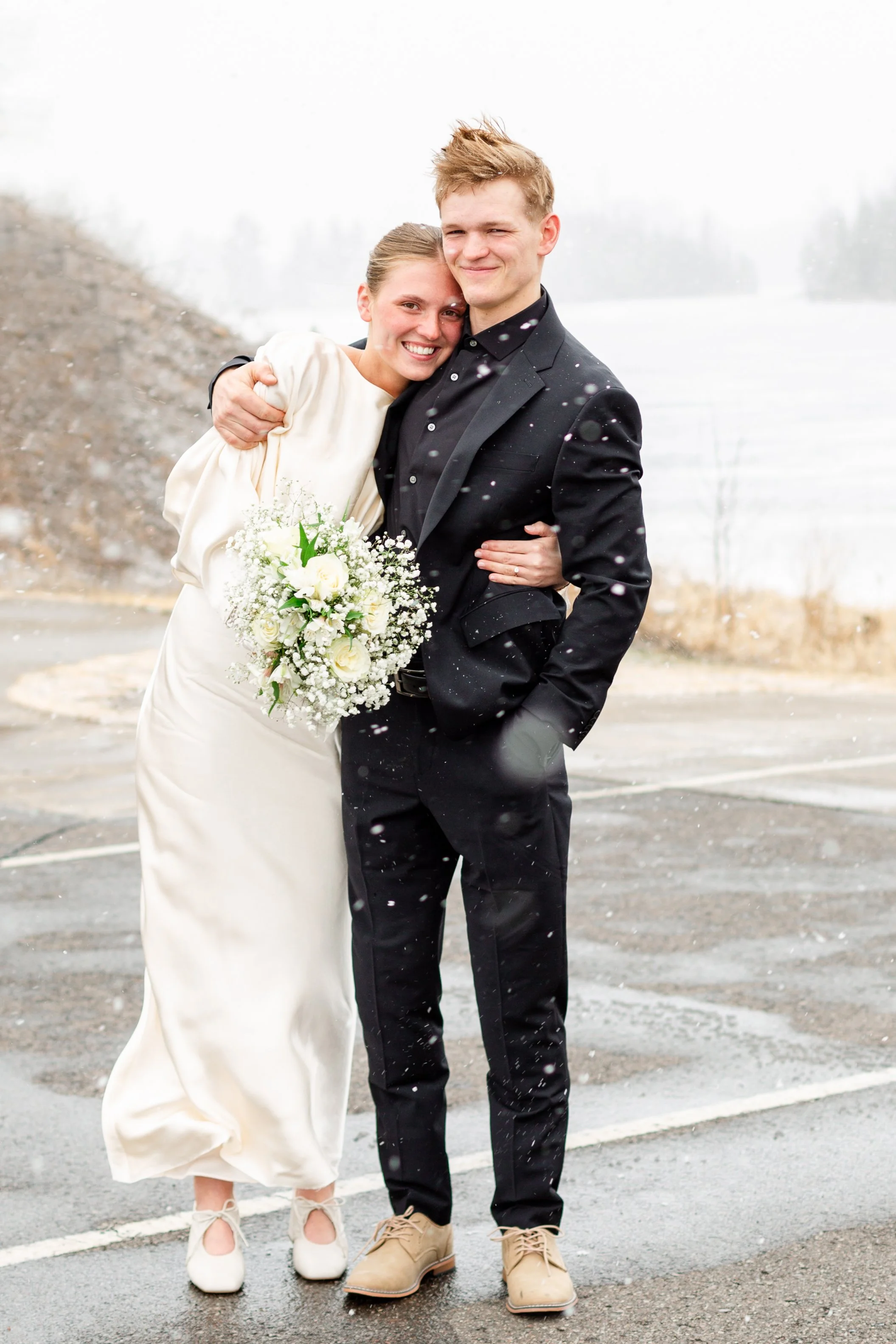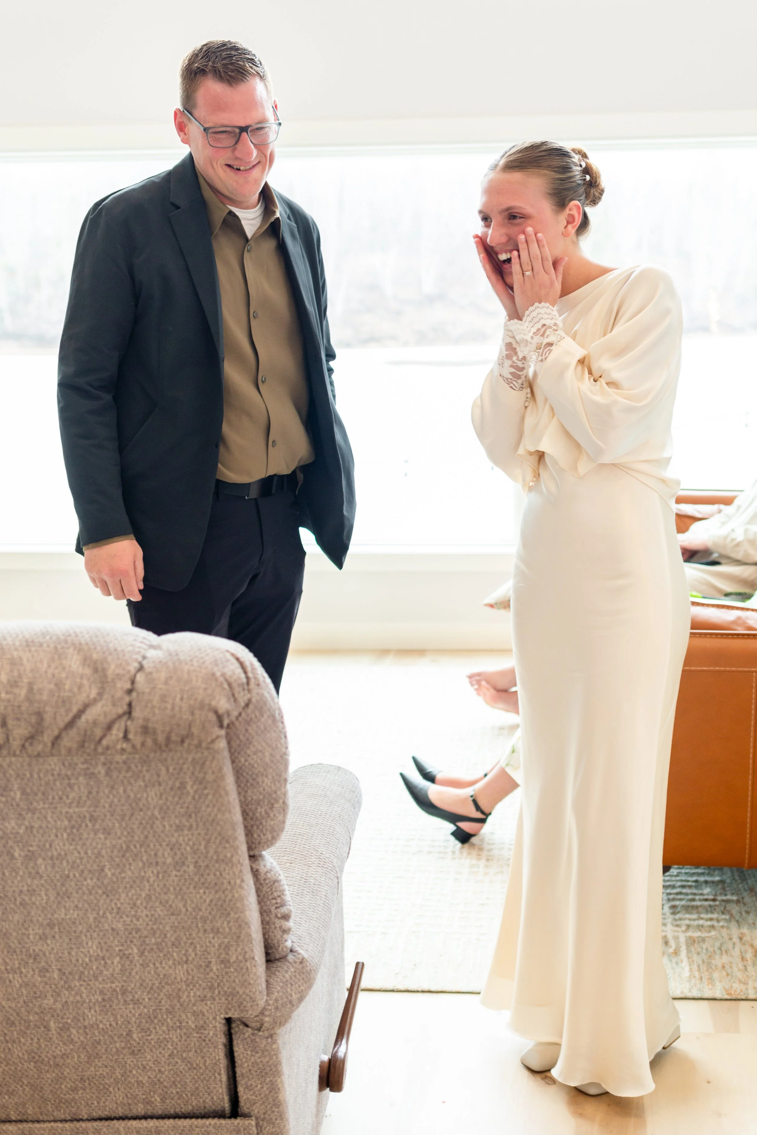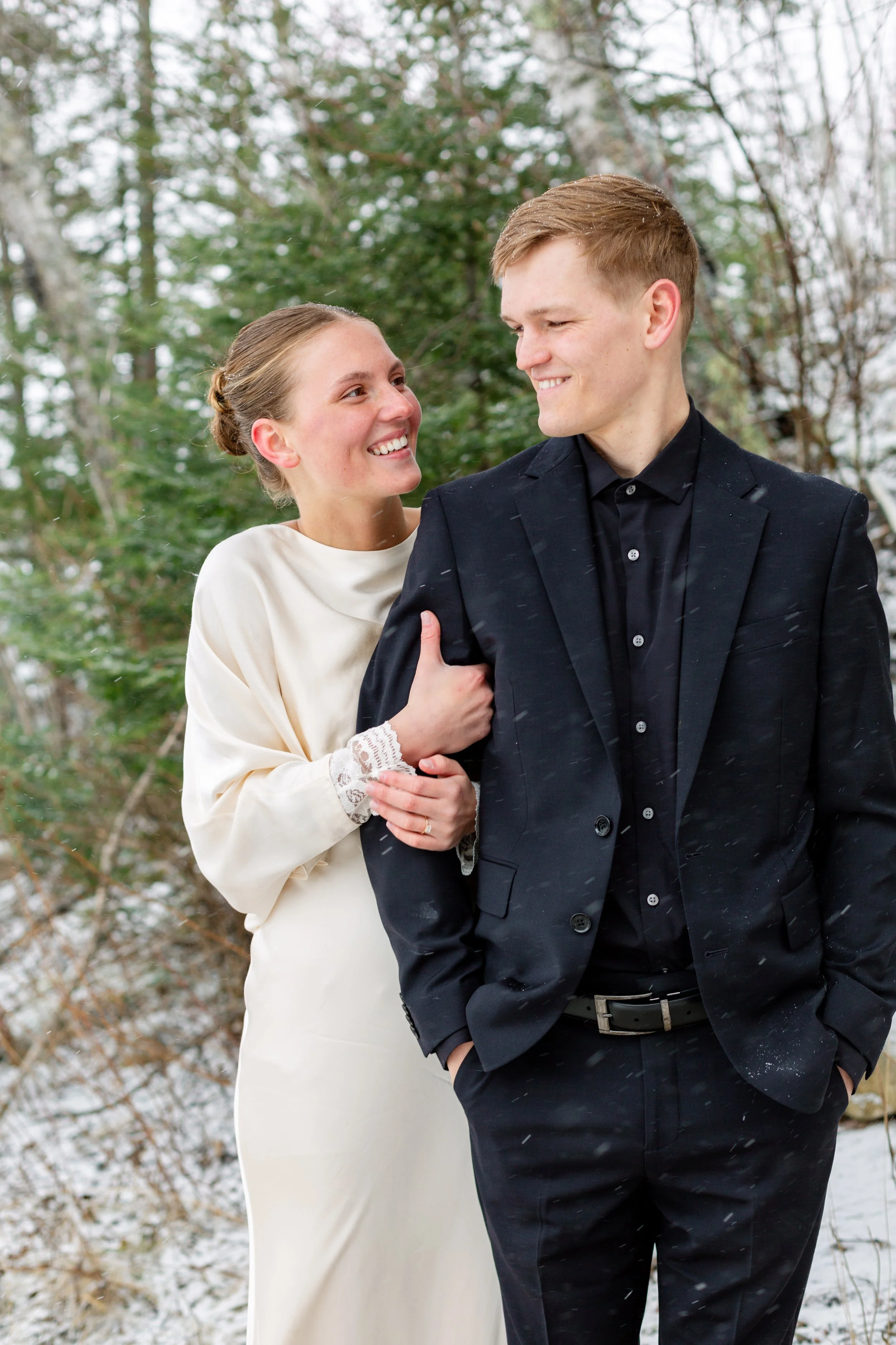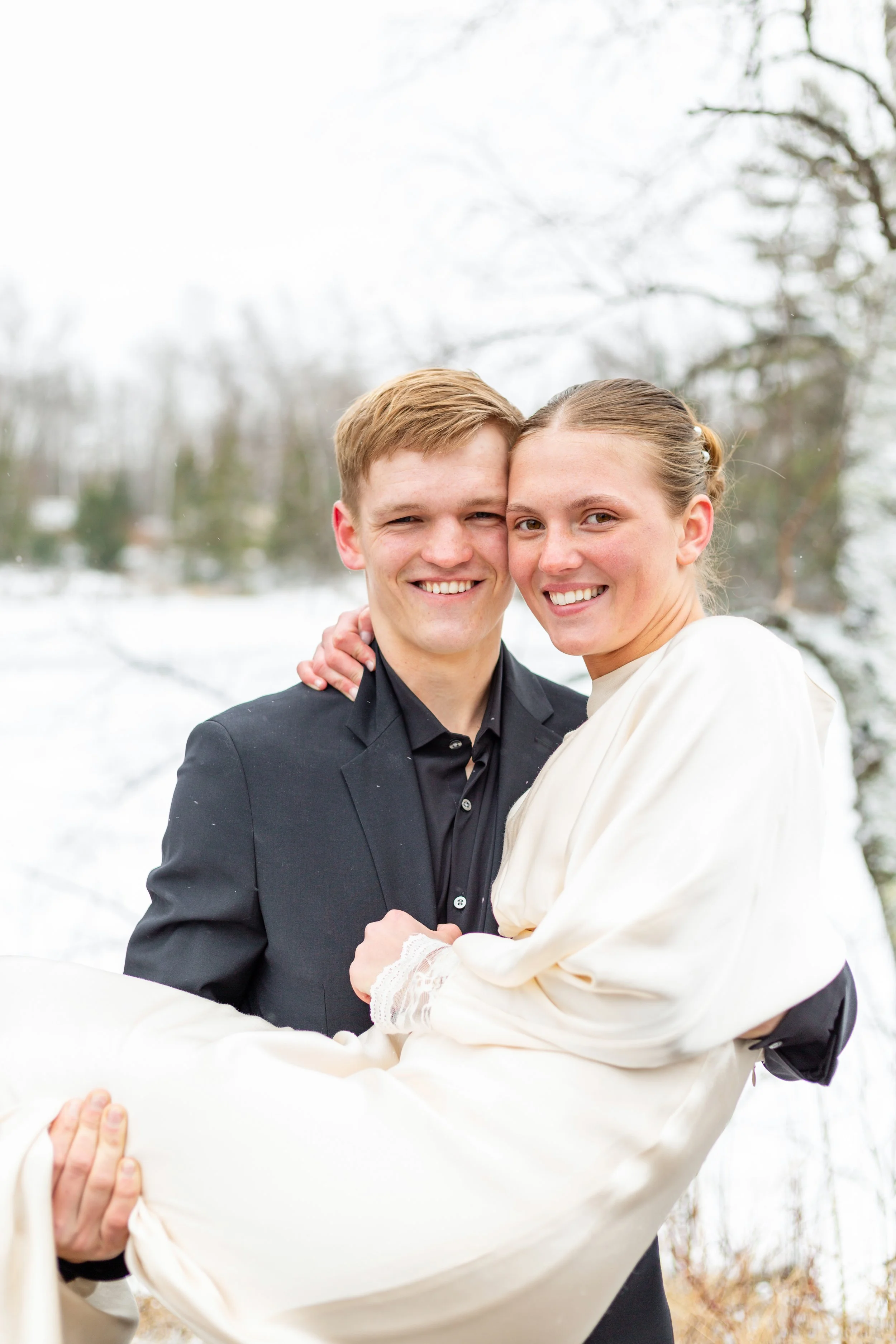 Kurt and Lilly were married last March on a very windy day! Funny enough, the weather for their engagement session was almost exactly the same. Lilly got ready at her parents place on Island Lake, which made for some great views and lighting. We met Kurt down at the boat launch for the first look and it was an absolute wind tunnel! The photos turned out really cute but instead of staying down there as planned, we went right back to the house and found less windy spots for photos there. :)