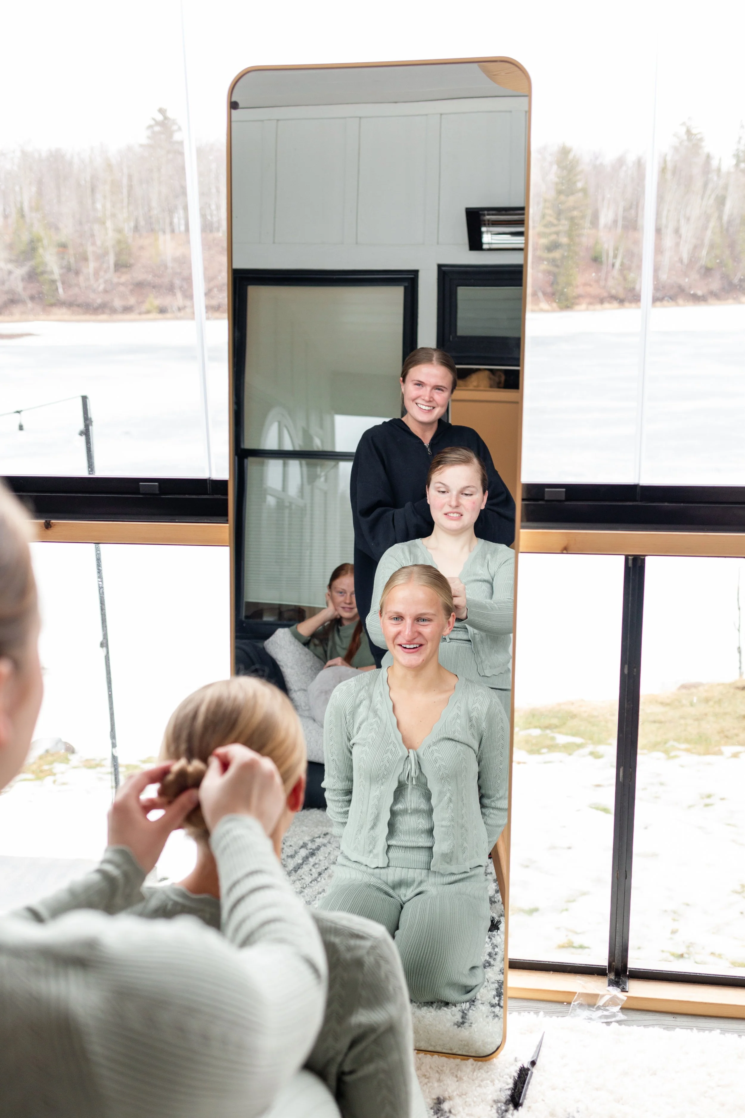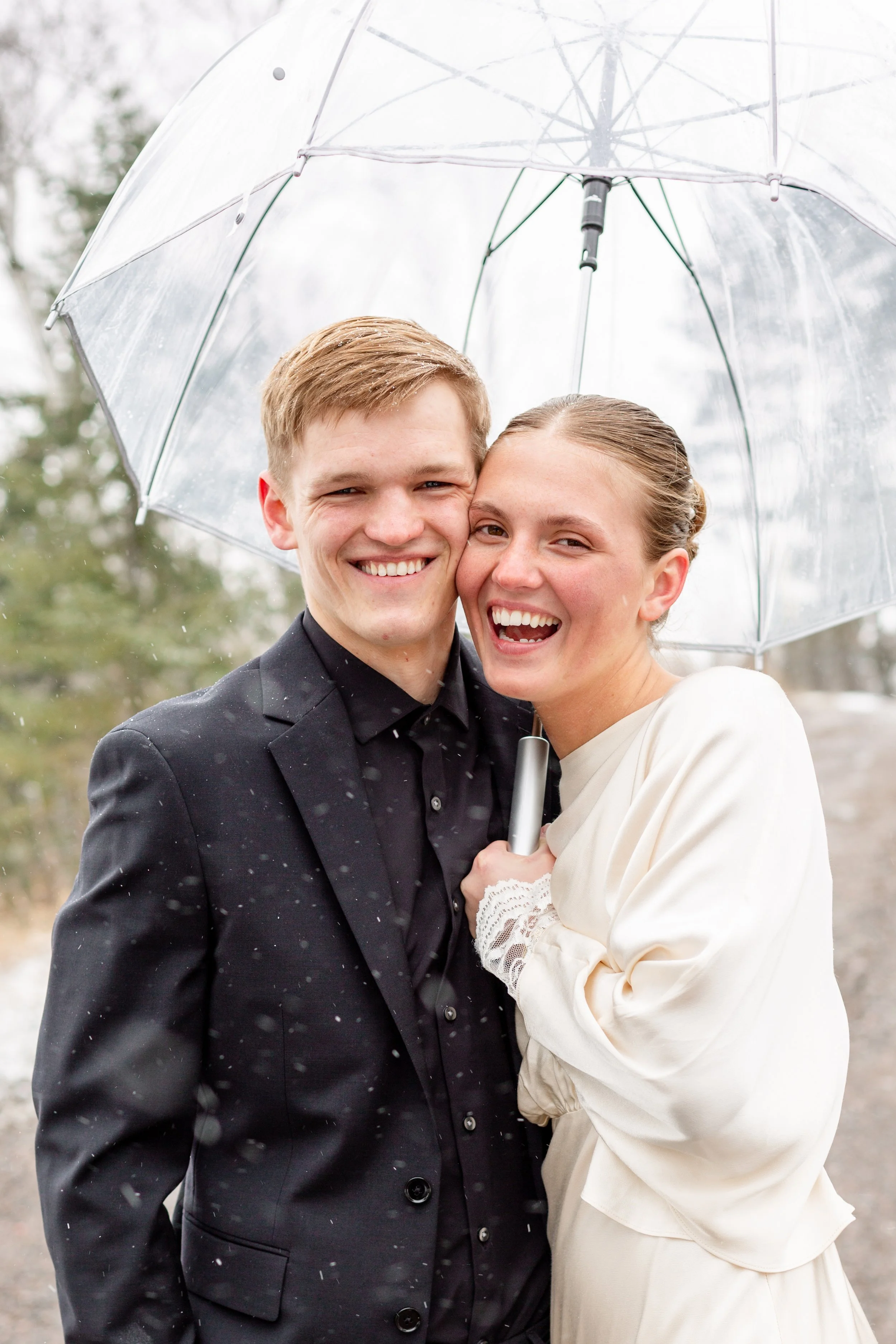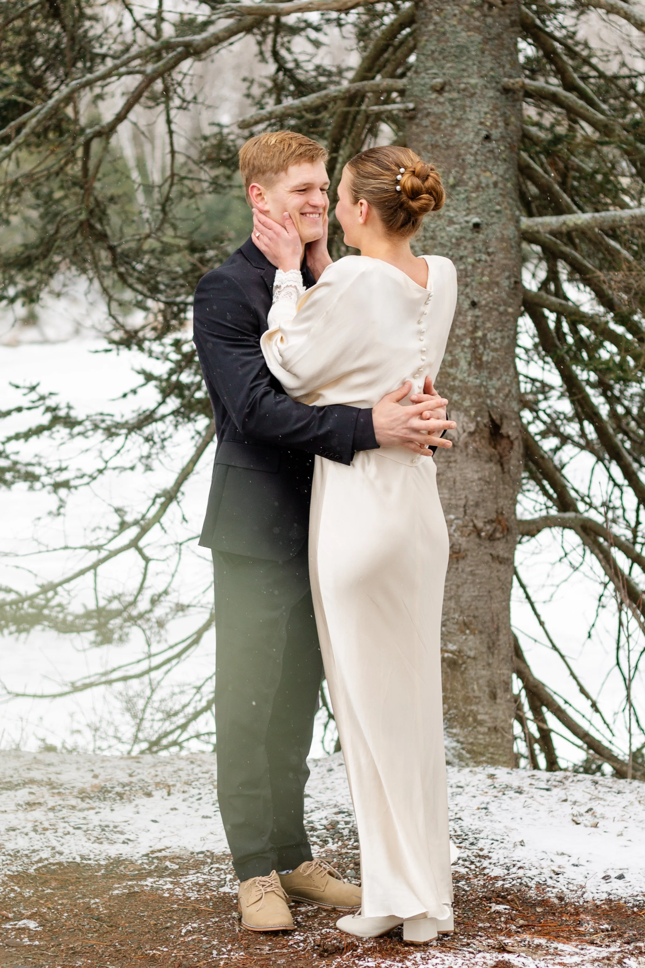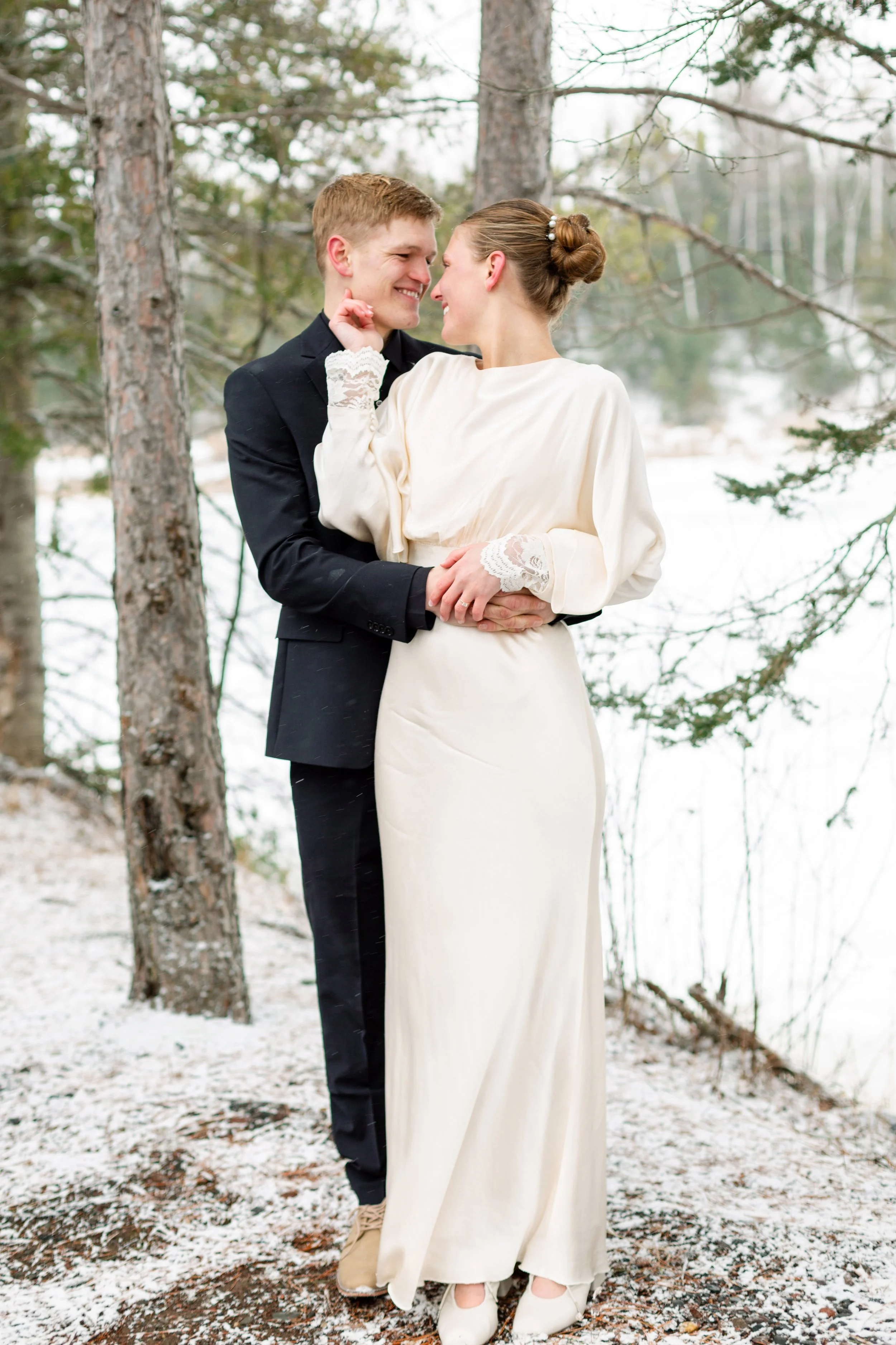 Kurt and Lilly were married last March on a very windy day! Funny enough, the weather for their engagement session was almost exactly the same. Lilly got ready at her parents place on Island Lake, which made for some great views and lighting. We met Kurt down at the boat launch for the first look and it was an absolute wind tunnel! The photos turned out really cute but instead of staying down there as planned, we went right back to the house and found less windy spots for photos there. :)