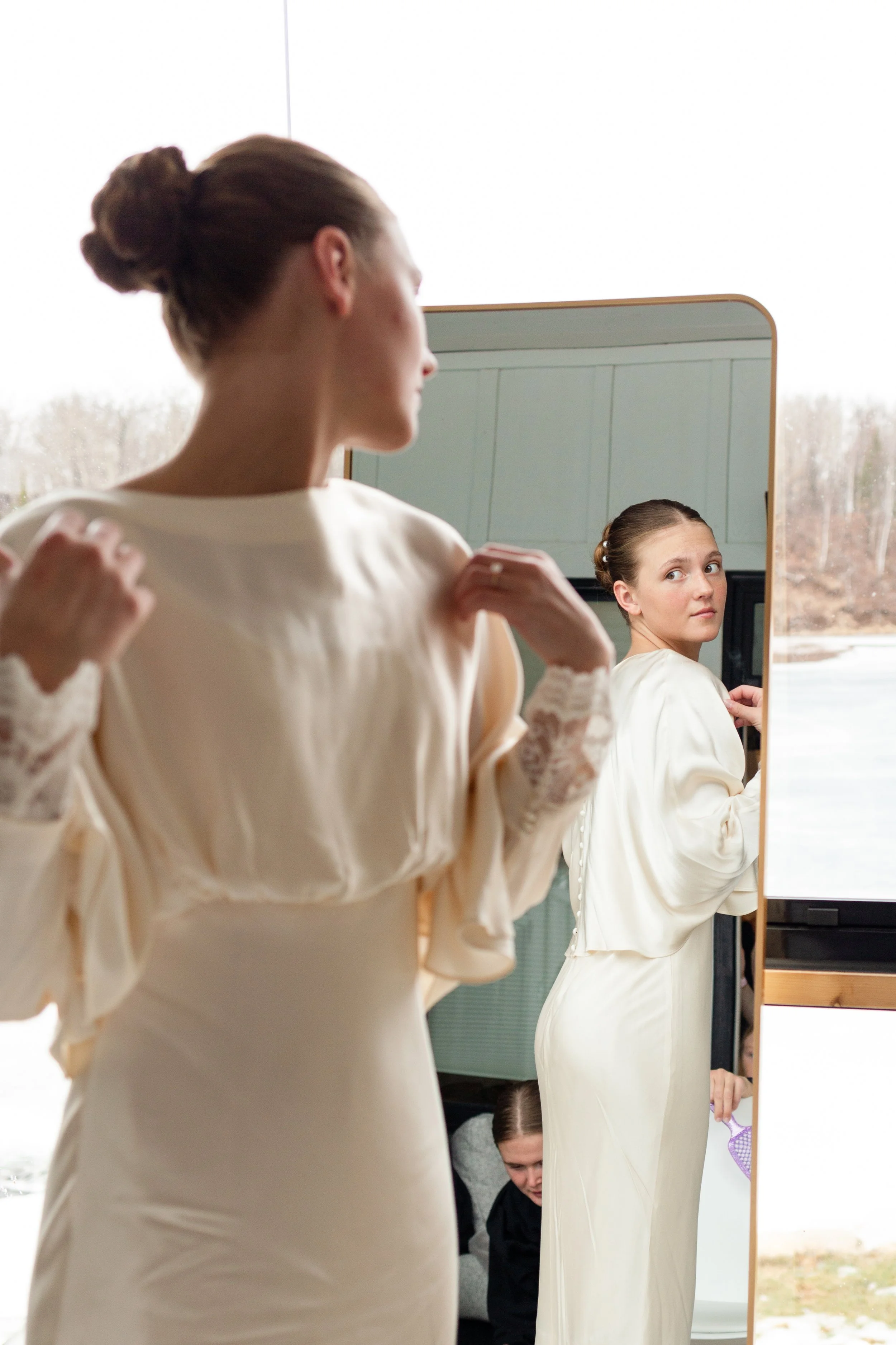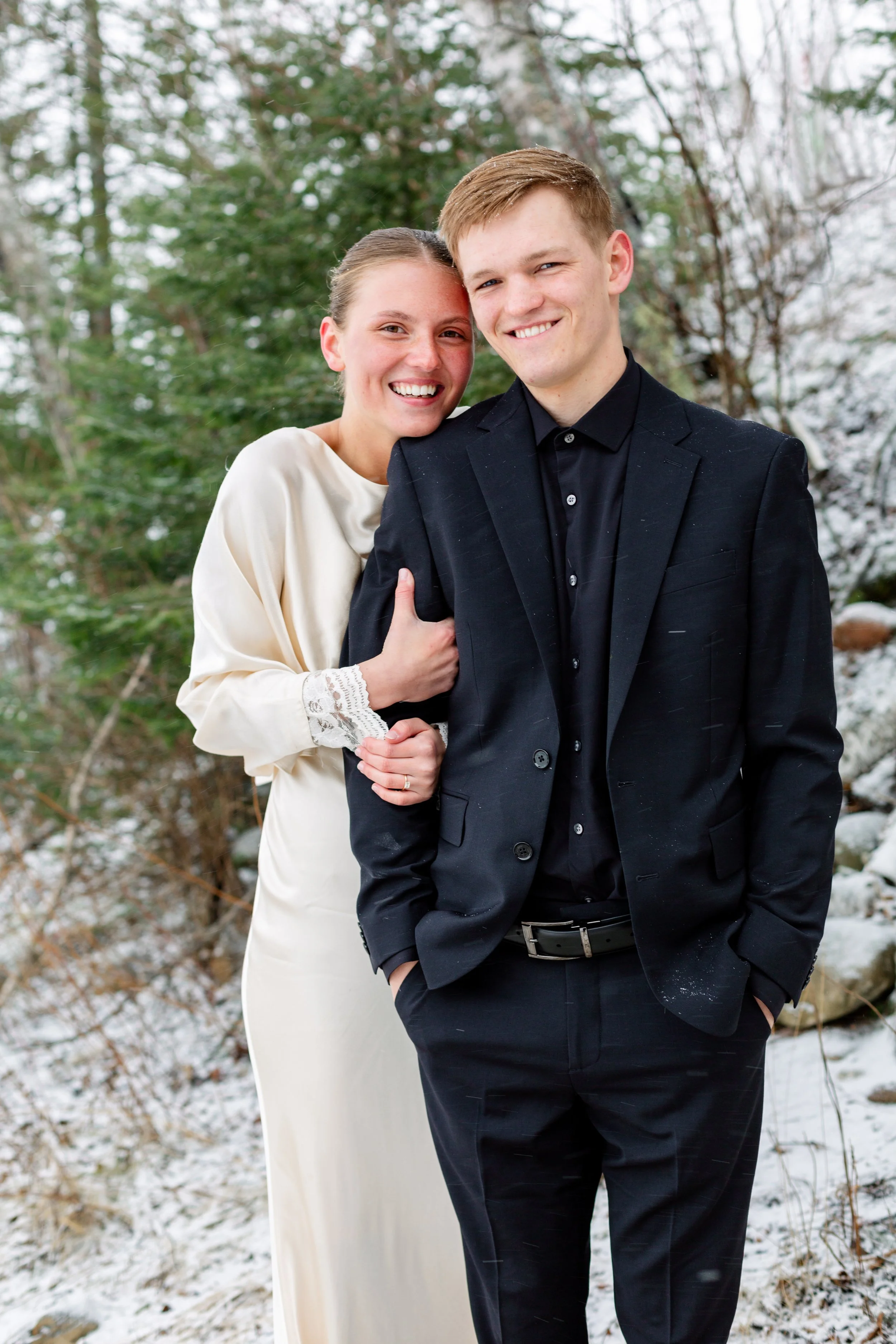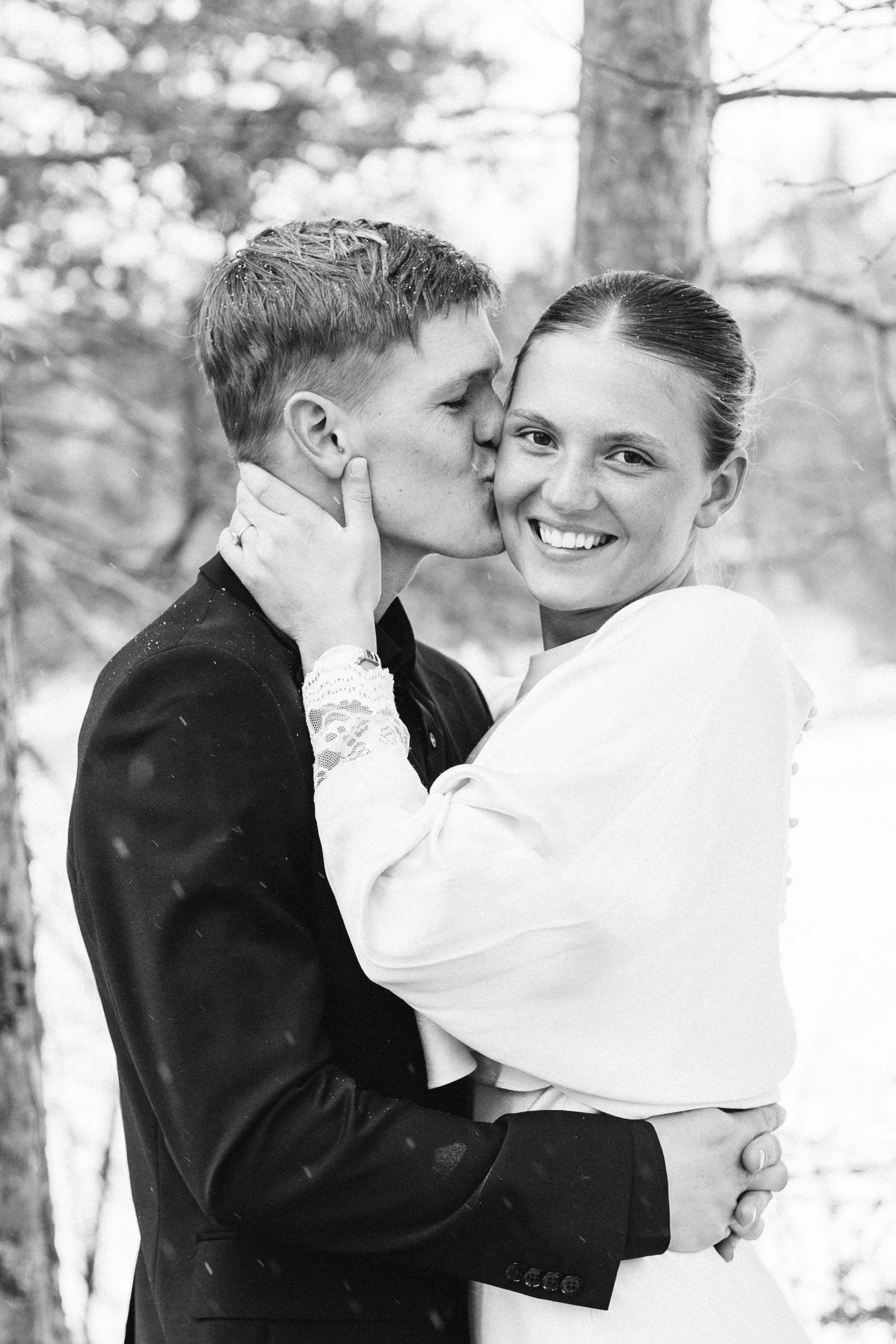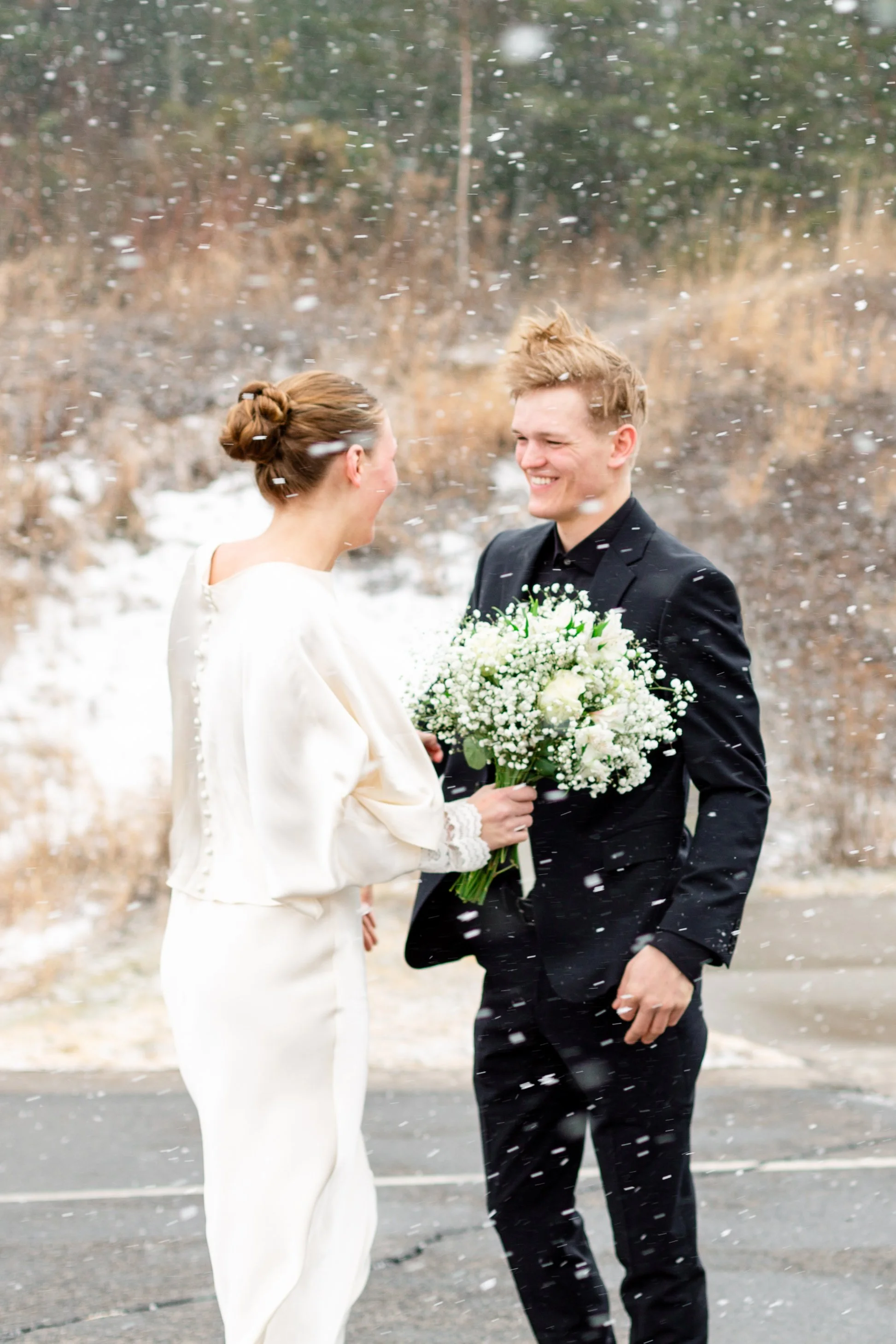 Kurt and Lilly were married last March on a very windy day! Funny enough, the weather for their engagement session was almost exactly the same. Lilly got ready at her parents place on Island Lake, which made for some great views and lighting. We met Kurt down at the boat launch for the first look and it was an absolute wind tunnel! The photos turned out really cute but instead of staying down there as planned, we went right back to the house and found less windy spots for photos there. :)