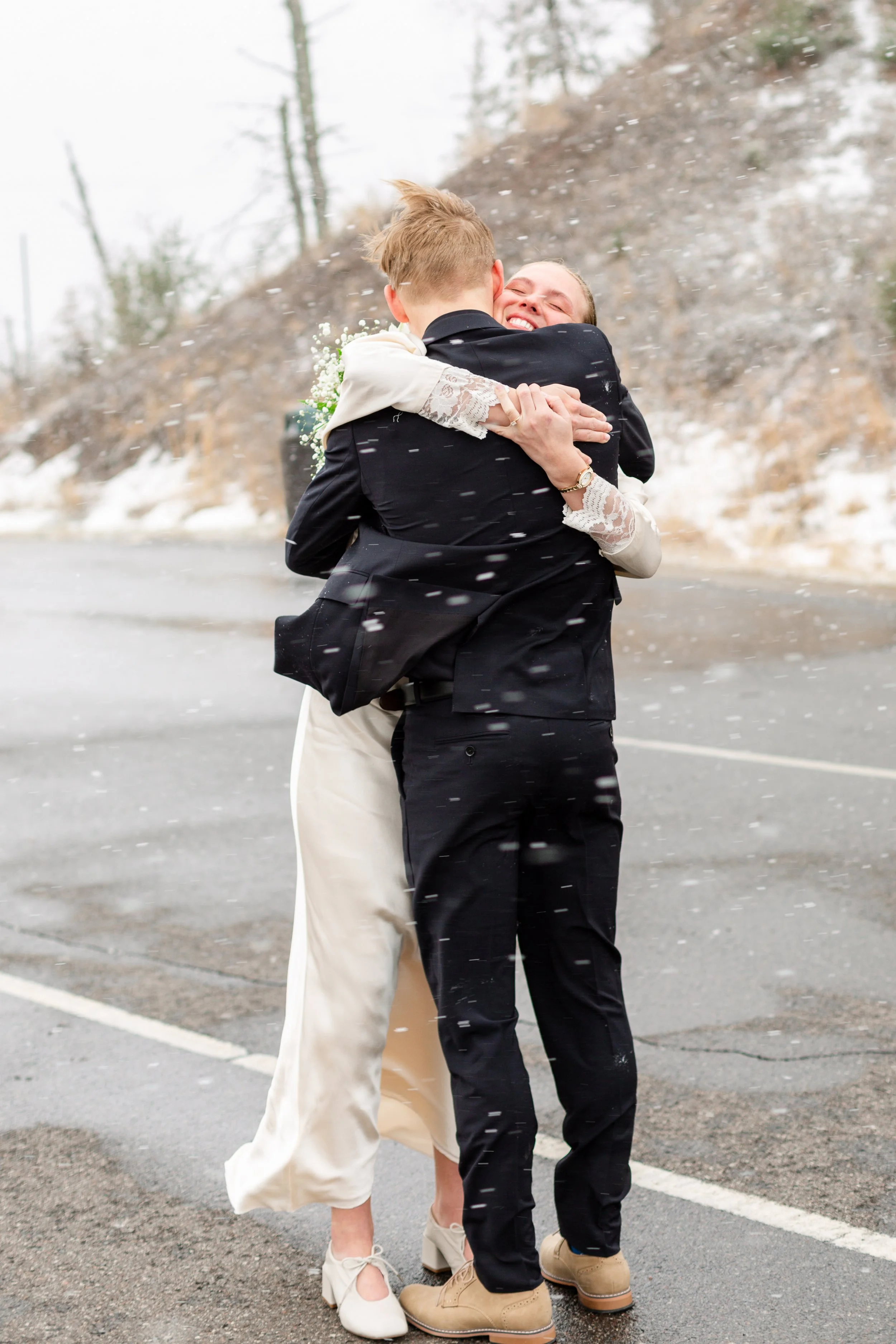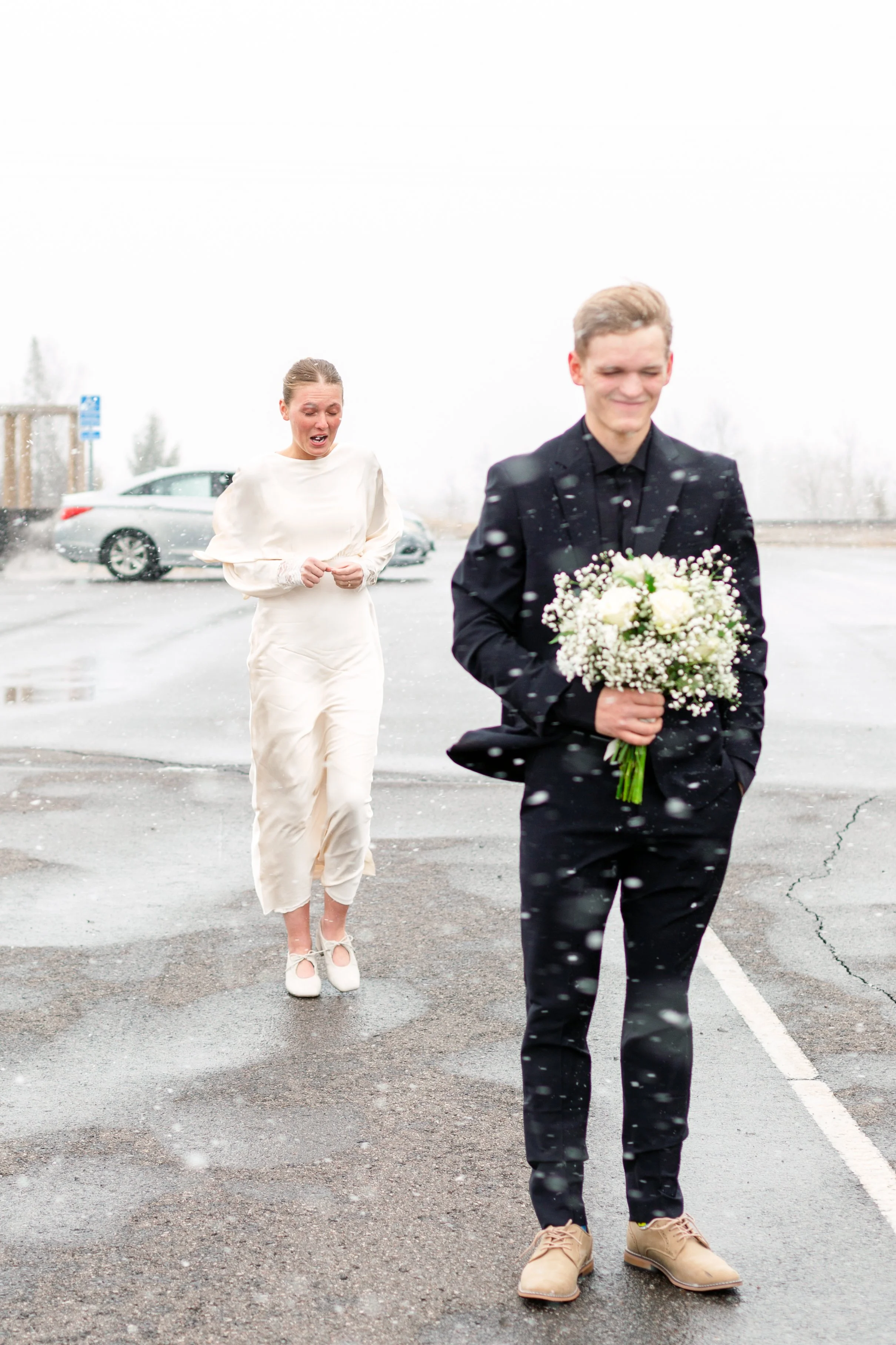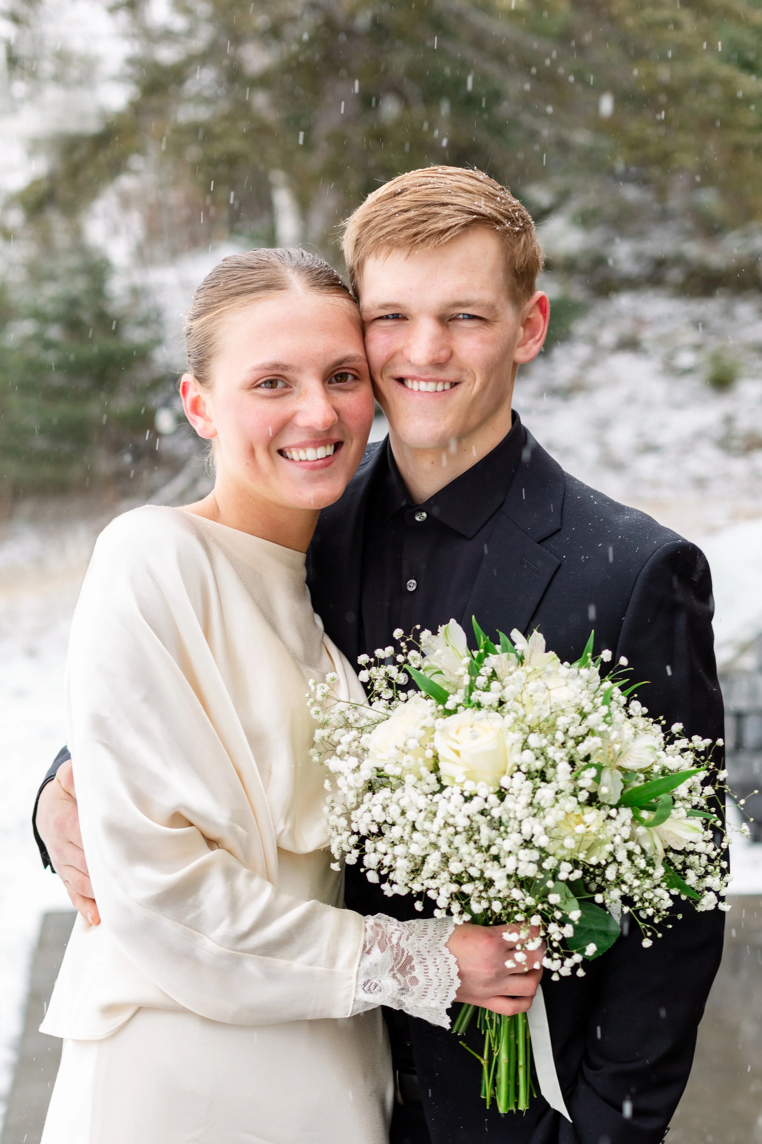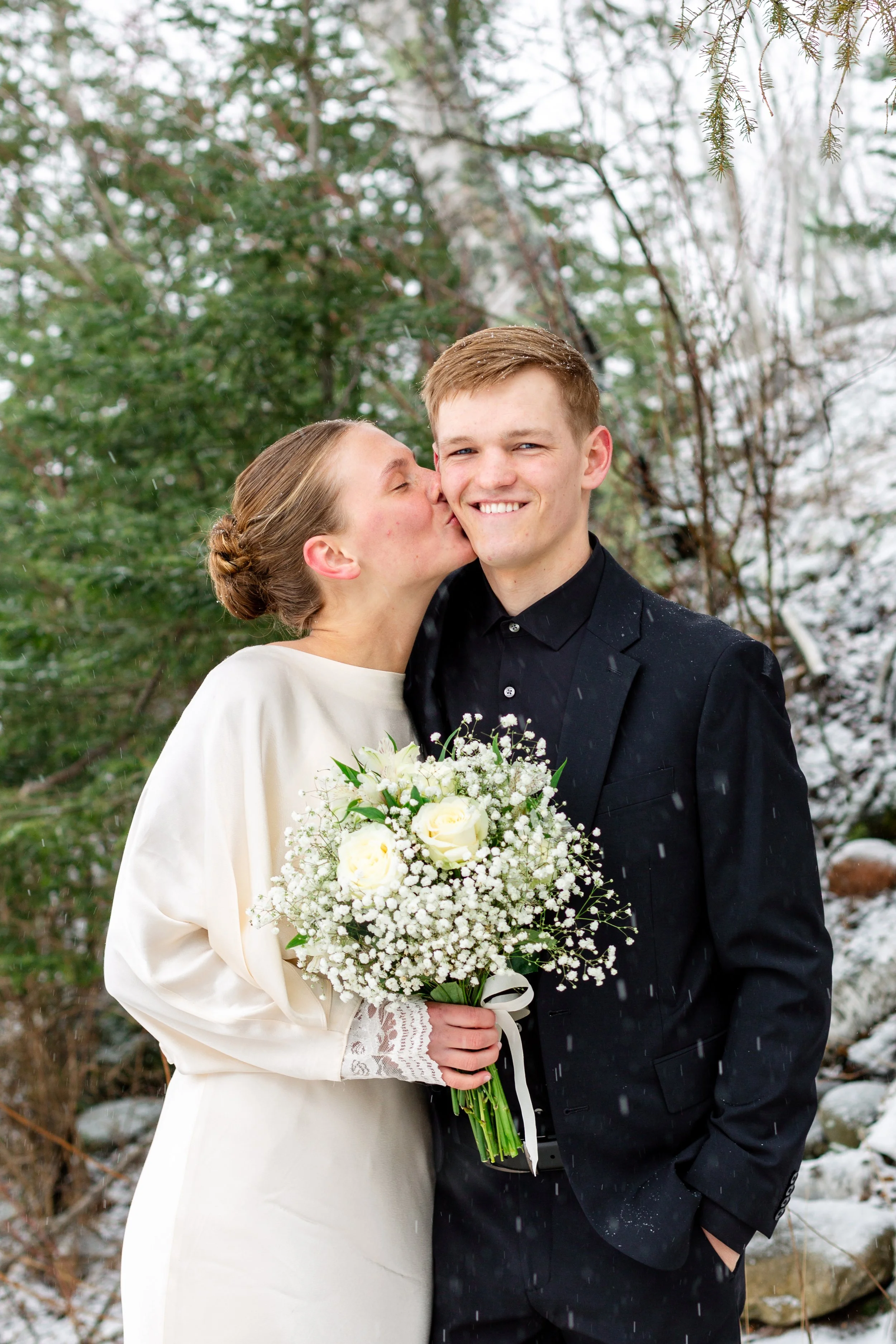 Kurt and Lilly were married last March on a very windy day! Funny enough, the weather for their engagement session was almost exactly the same. Lilly got ready at her parents place on Island Lake, which made for some great views and lighting. We met Kurt down at the boat launch for the first look and it was an absolute wind tunnel! The photos turned out really cute but instead of staying down there as planned, we went right back to the house and found less windy spots for photos there. :)