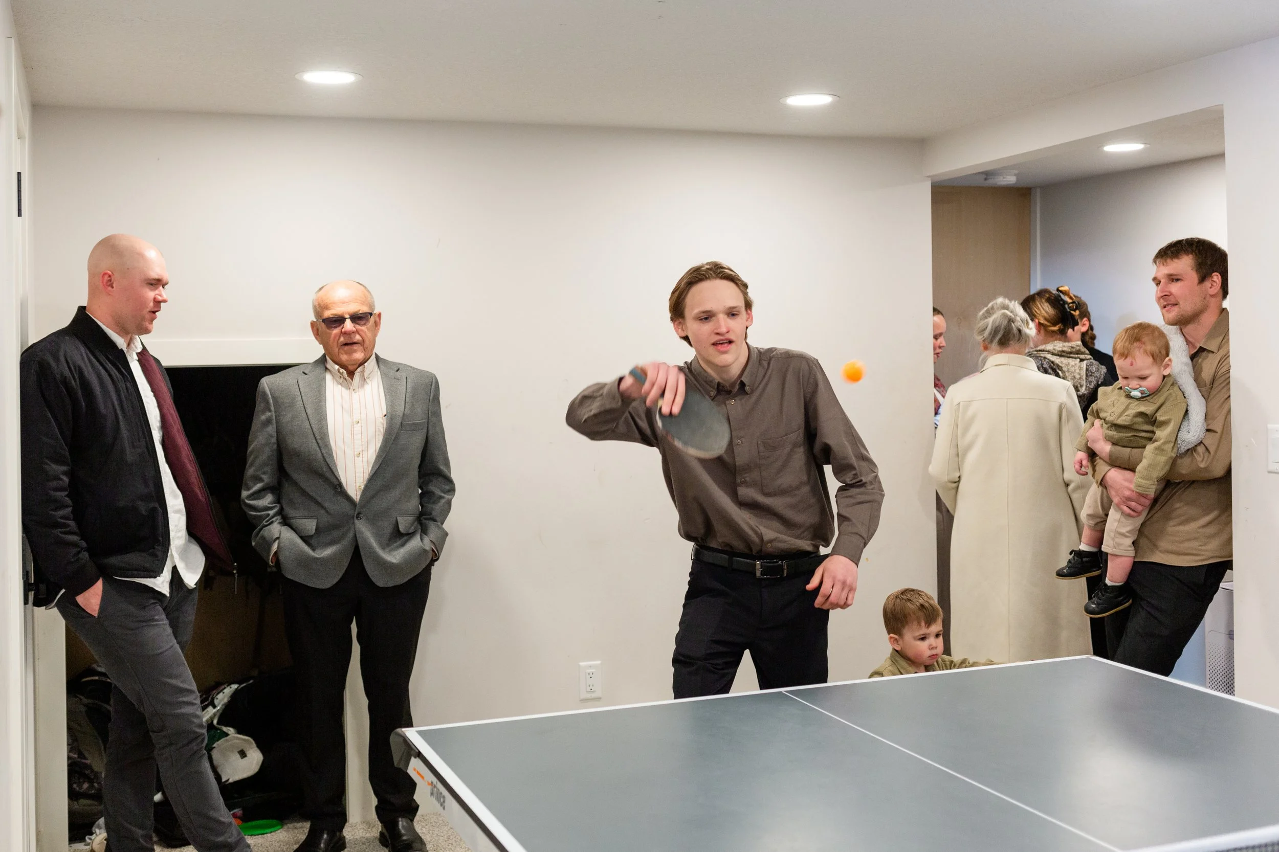 Ping pong breaks between family photo groupings.