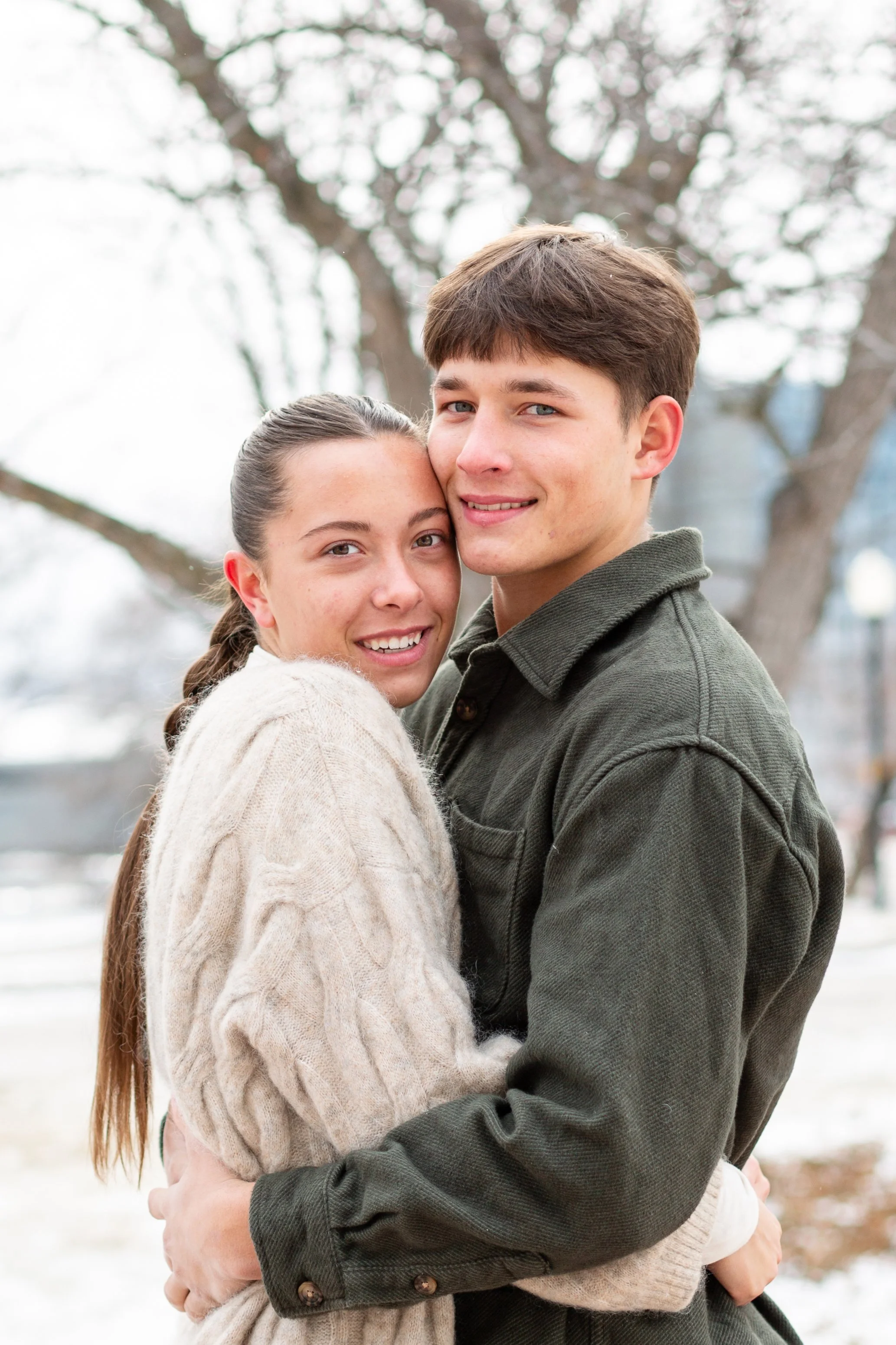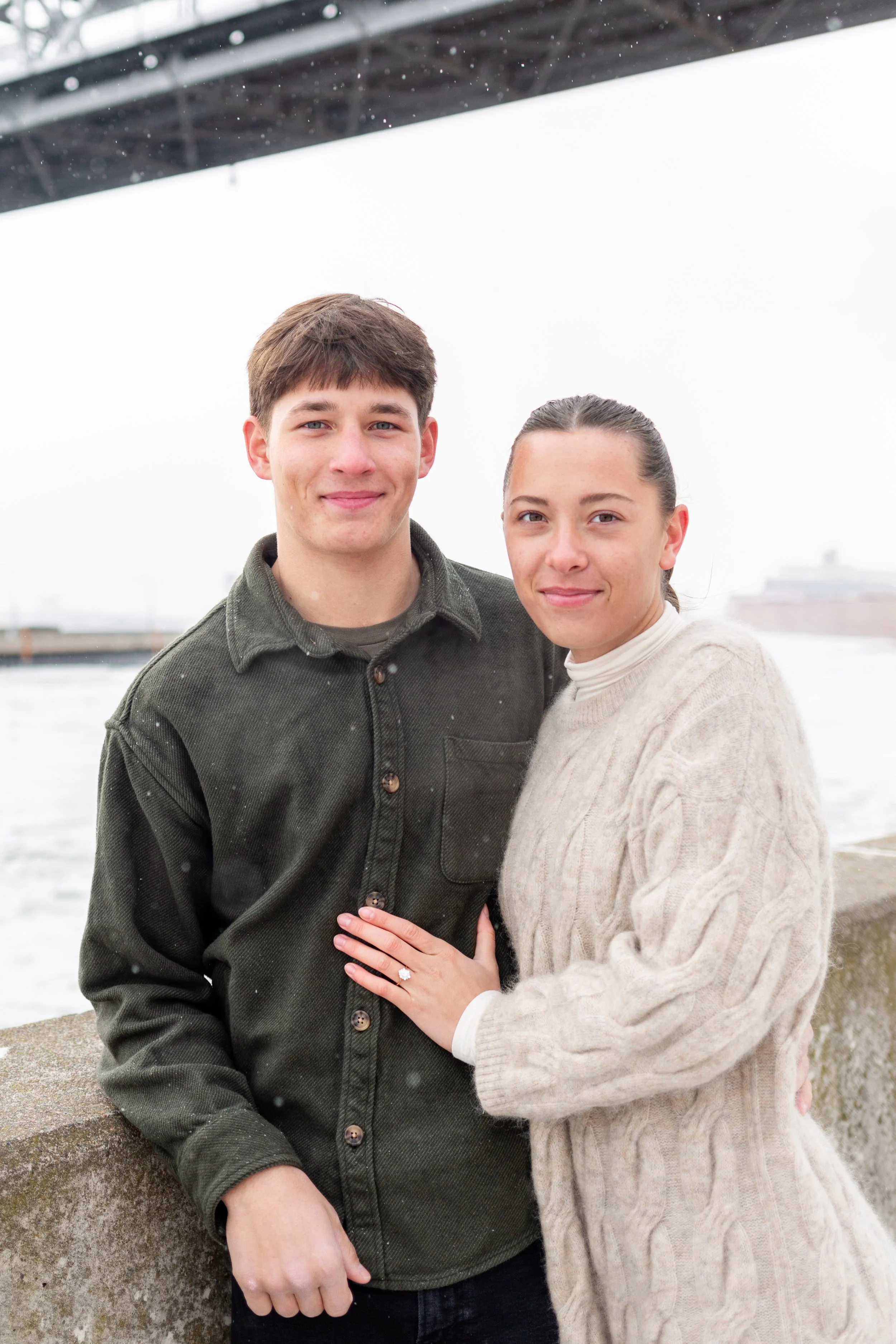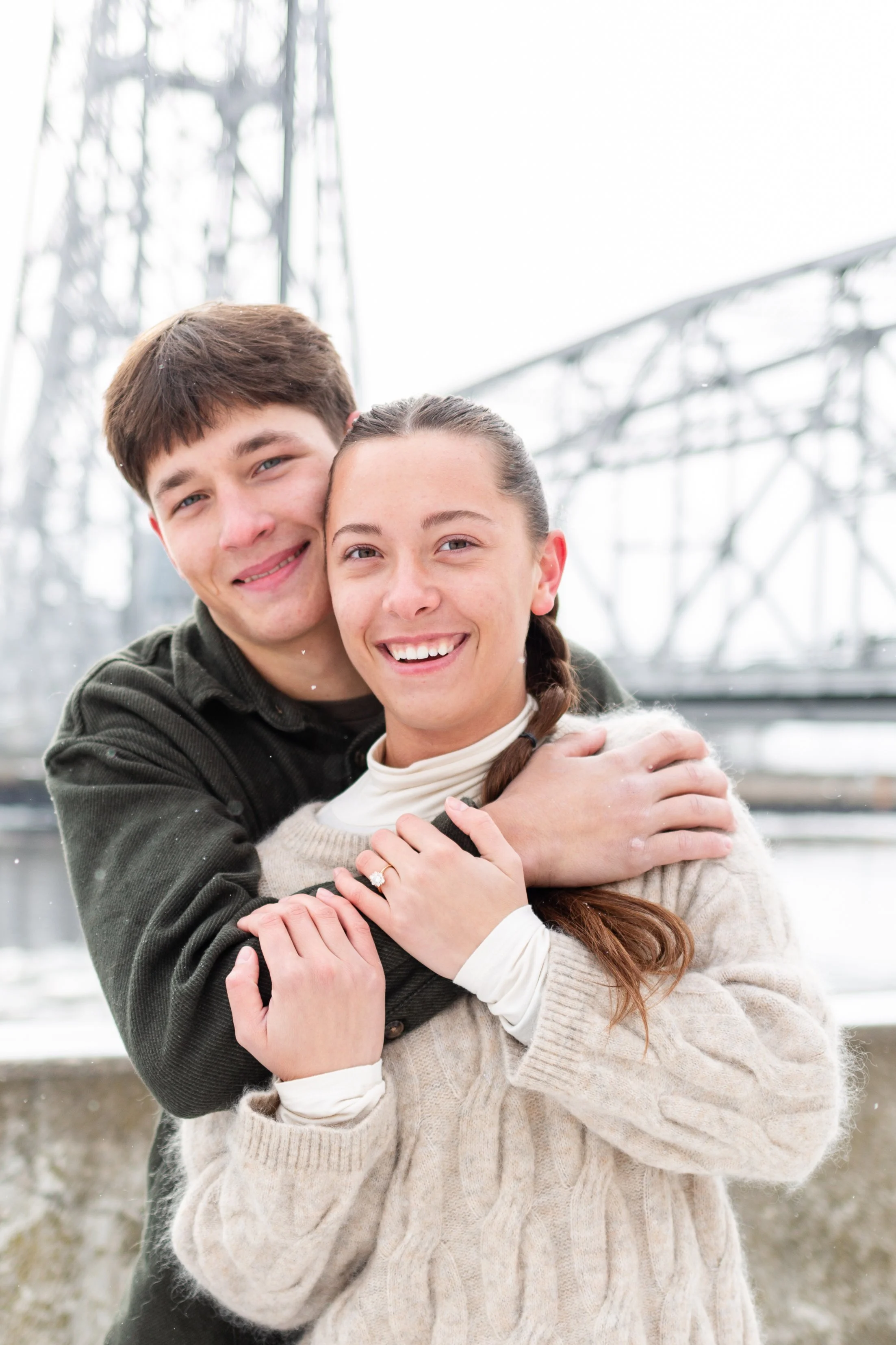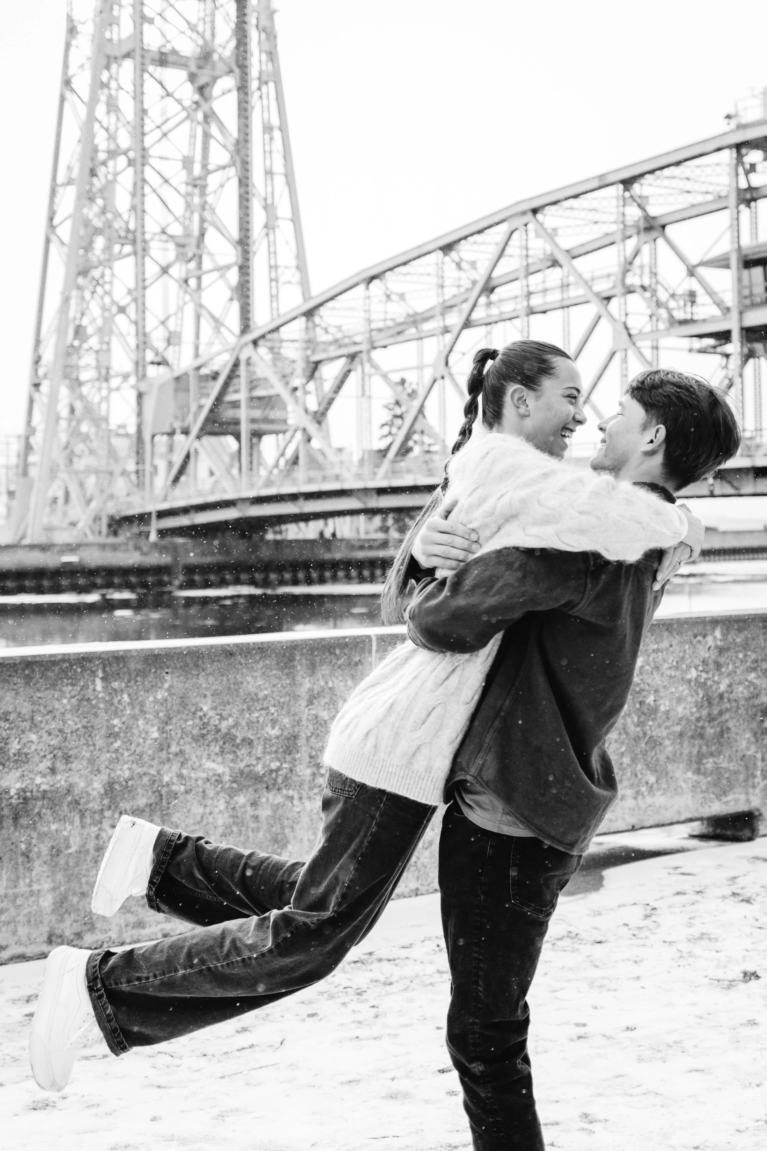 These two. <3 Gabriel is my niece and her and Callan together are just the sweetest. We planned to meet at the Duluth Courthouse for photos in the courtyard, and the lighting turned out so perfectly on such a cold January day! We managed about 15 minutes there and then spontaneously decided to scurry down to the canal, and wouldn’t you know it, a ship was coming through! Talk about a classic Duluth scene. The bridge attendant announced over the loudspeaker that this was the last ship coming through for the season too. We got lucky! I looooove the ship and bridge photos so much, especially with the sparkly snowflakes falling down.
