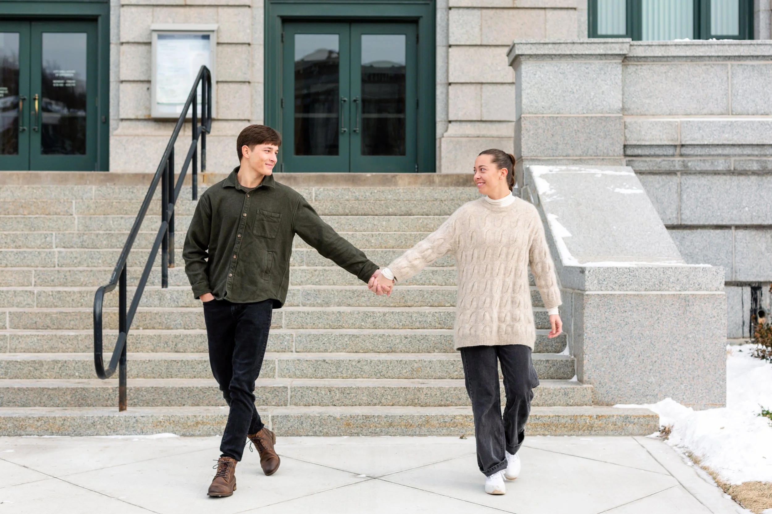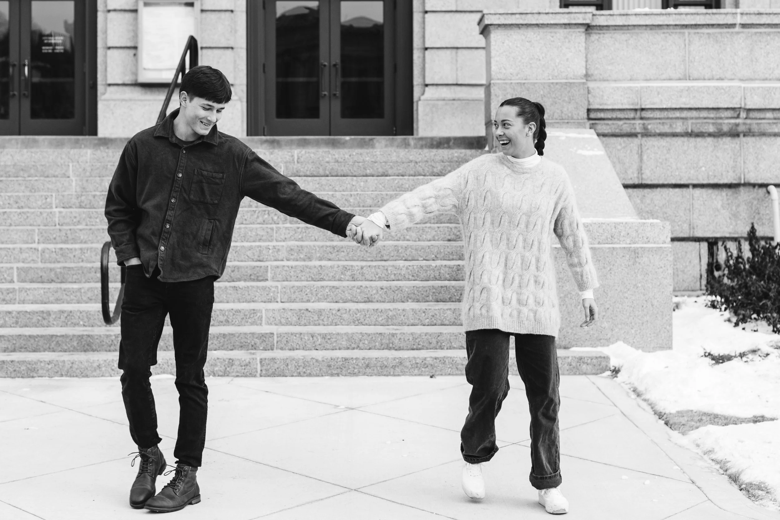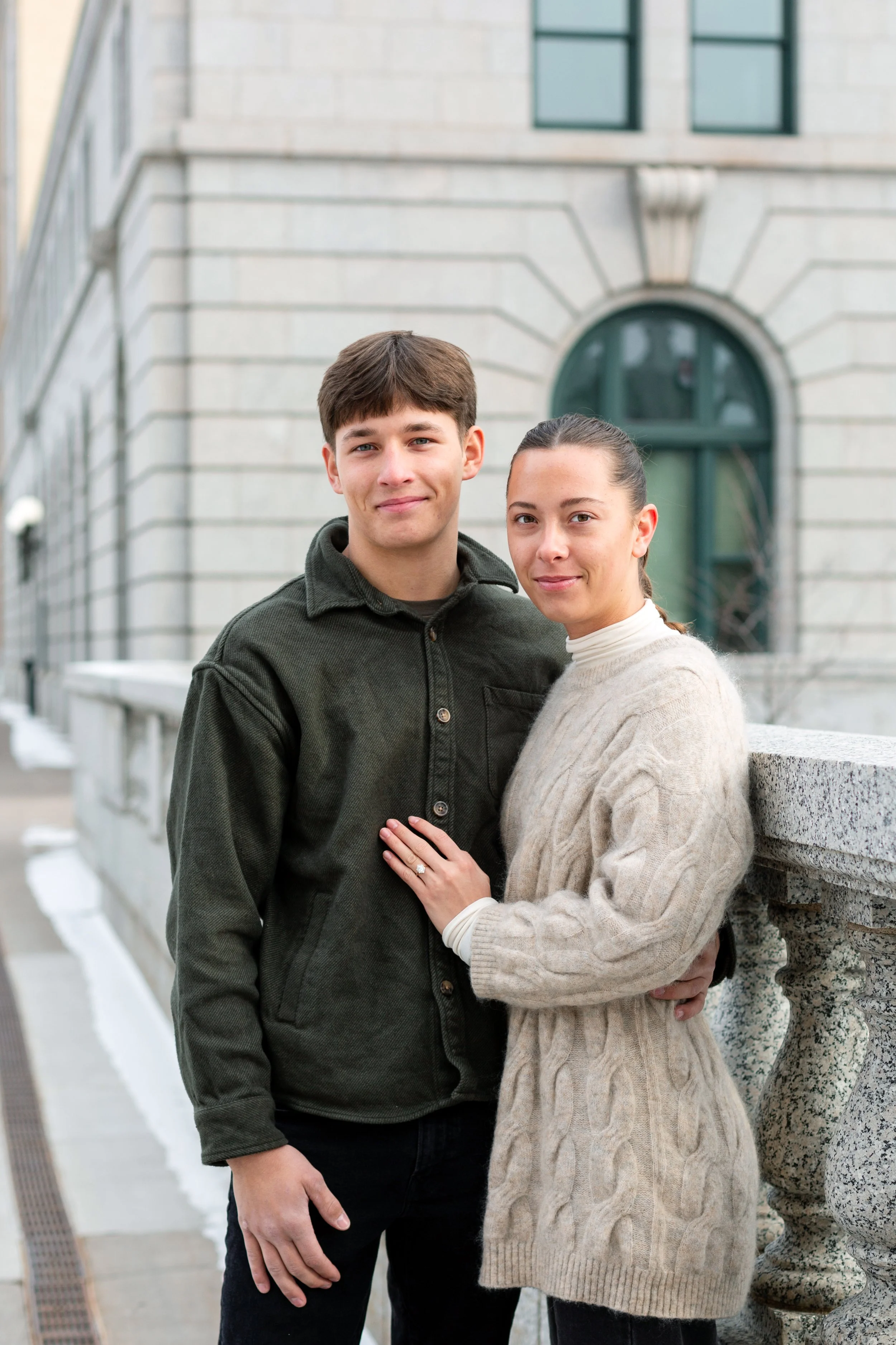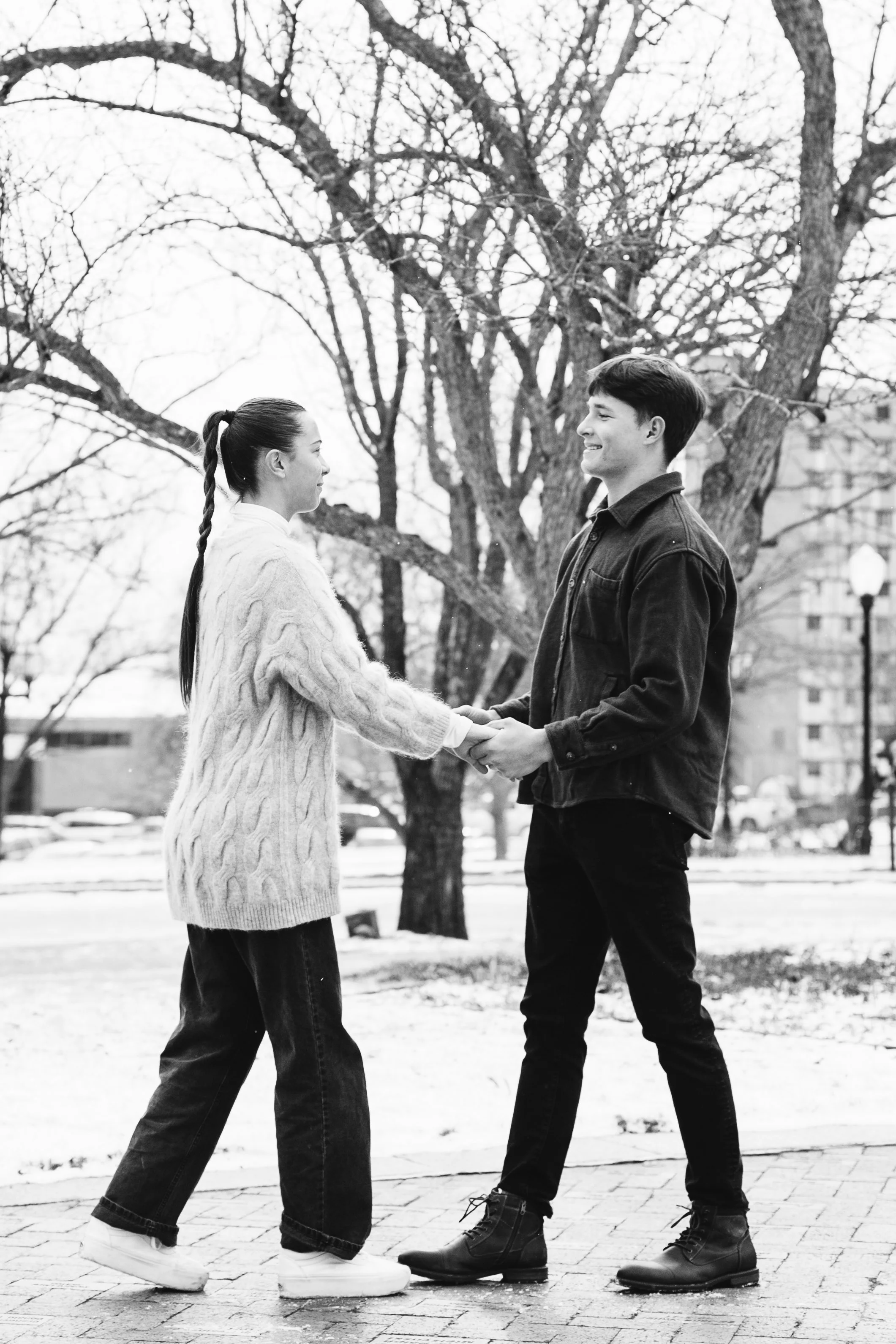 These two. <3 Gabriel is my niece and her and Callan together are just the sweetest. We planned to meet at the Duluth Courthouse for photos in the courtyard, and the lighting turned out so perfectly on such a cold January day! We managed about 15 minutes there and then spontaneously decided to scurry down to the canal, and wouldn’t you know it, a ship was coming through! Talk about a classic Duluth scene. The bridge attendant announced over the loudspeaker that this was the last ship coming through for the season too. We got lucky! I looooove the ship and bridge photos so much, especially with the sparkly snowflakes falling down.